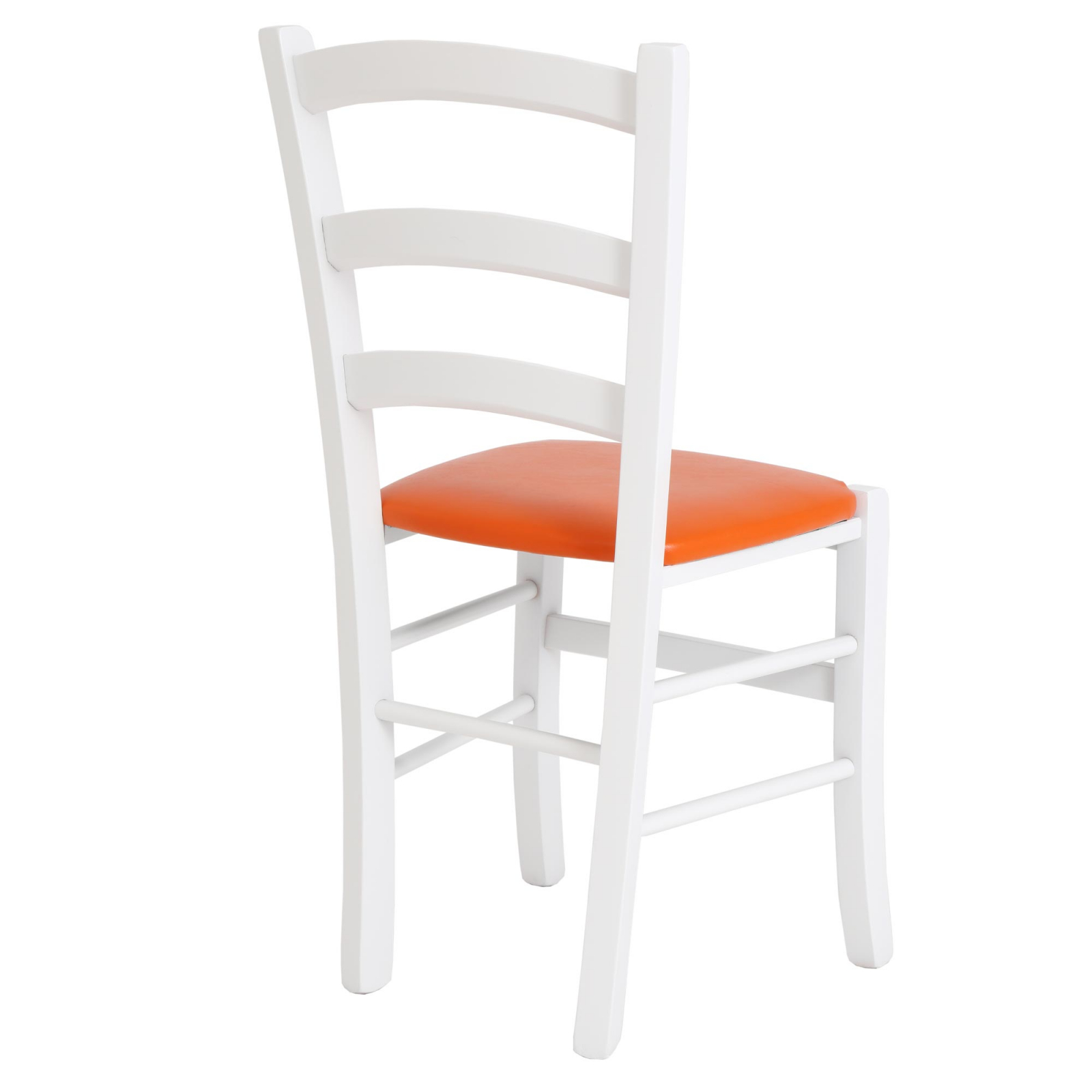 Scaun Paesana, cadru fag, culoare alb, material piele ecologica portocaliu