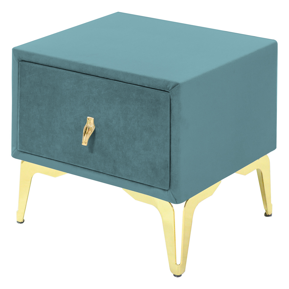 Noptierele tapitate cu picioare aurii iti vor face viata mai usoara, putand depozita cu usurinta pe ele lucruri care iti sunt necesare langa pat: o carte, telecomanda de la tv, sticla cu apa. Materialul folosit pentru tapiterie fiind din aceeasi colectie ca si cel folosit pentru paturile tapitate, va fi usor sa il integrezi in dormitorul tau. Nu te vei confrunta cu diferente de nuanta sau material.
