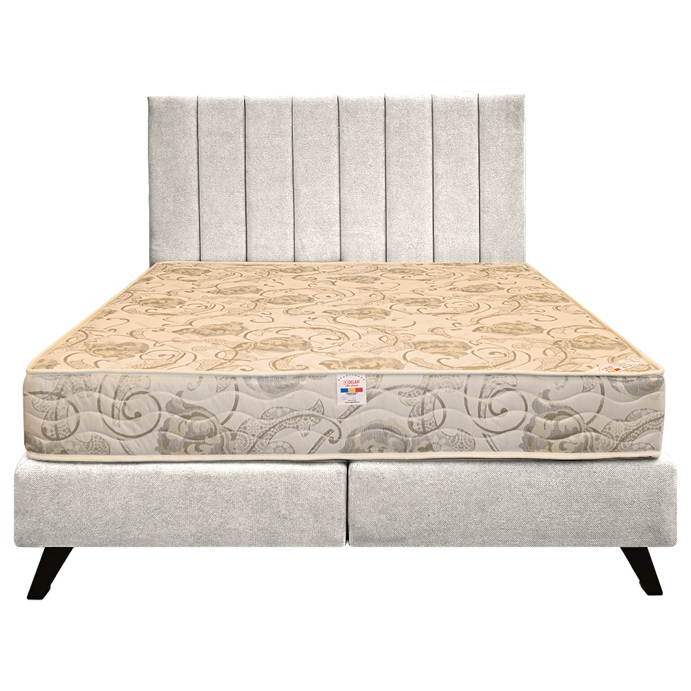 • Structura patului este realizata din lemn stratificat si arcuri de tip bonell.  Arcurile Bonell, cunoscute pentru durabilitatea și flexibilitatea lor, asigură un suport ortopedic excelent, adaptabil formelor corpului și contribuind la o distribuție uniformă a greutății. Fermitatea saltelei este una medie. Lemnul stratificat adauga rezistenta si stabilitate, prevenind orice deformare in timp si garantand o durata de viata indelungata.