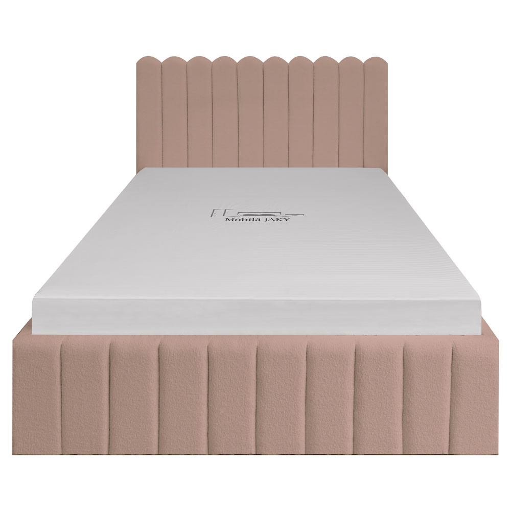 - Tapiterie din Stofa Boucle: Aceasta tapiterie se remarca prin textura sa unica si placuta la atingere, care nu doar ca ofera confort, dar si o estetica contemporana si primitoare. Stofa boucle adauga un farmec distinct, transformand patul intr-un element de decor atragator. Nuantele elegante ale stofei variaza in functie de iluminare