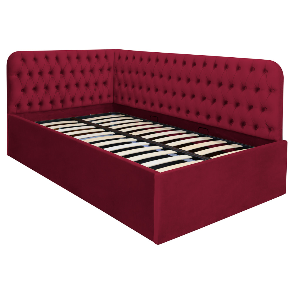 Structura patului este formata din lemn si pal melaminat. Aceasta este acoperita cu spuma poliuretanica in grosime de 50 mm si vatelina, urmata de stratul final reprezentat de o catifea fina si, totodata, usor de intretinut. Nasturii tapitati sunt elementele cheie care vor da camerei tale eleganta de care are nevoie.